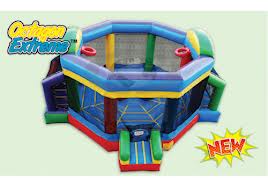 Joust rentals are a popular item for high school graduation parties or older kid birthdays. The pedestal joust rental is great for those who are just looking to joust. It is a large arena that comes with two pedestals, two jousting poles and two headgear. The Octagon Extreme Rental is the most versatile inflatable rental. It can be used as an extra large bounce house and it also has two built in soccer goals and two basketball hoops. Kids will have hours of bouncy sports fun in the Octagon Extreme. Add on the Jousting package and it provides fun for the older and younger kids. The older kids will love trying to knock each other off the pedestals. Don’t delay in reserving one these units book up fast!