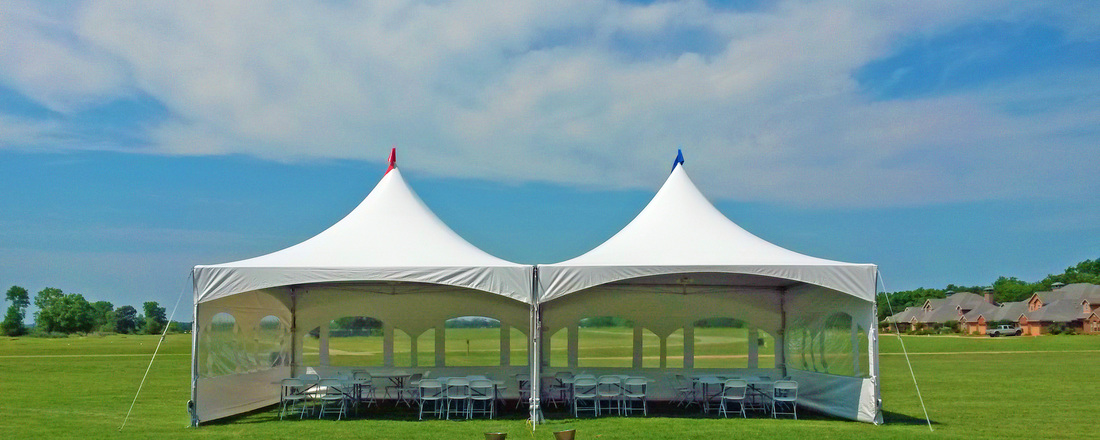 We carry frame style tents that come in sections to accommodate any size party. We also have our Elite style tent rentals for customers who want to elevate their event. Elite Tent Rentals are perfect for weddings with their elegant high peaked look.